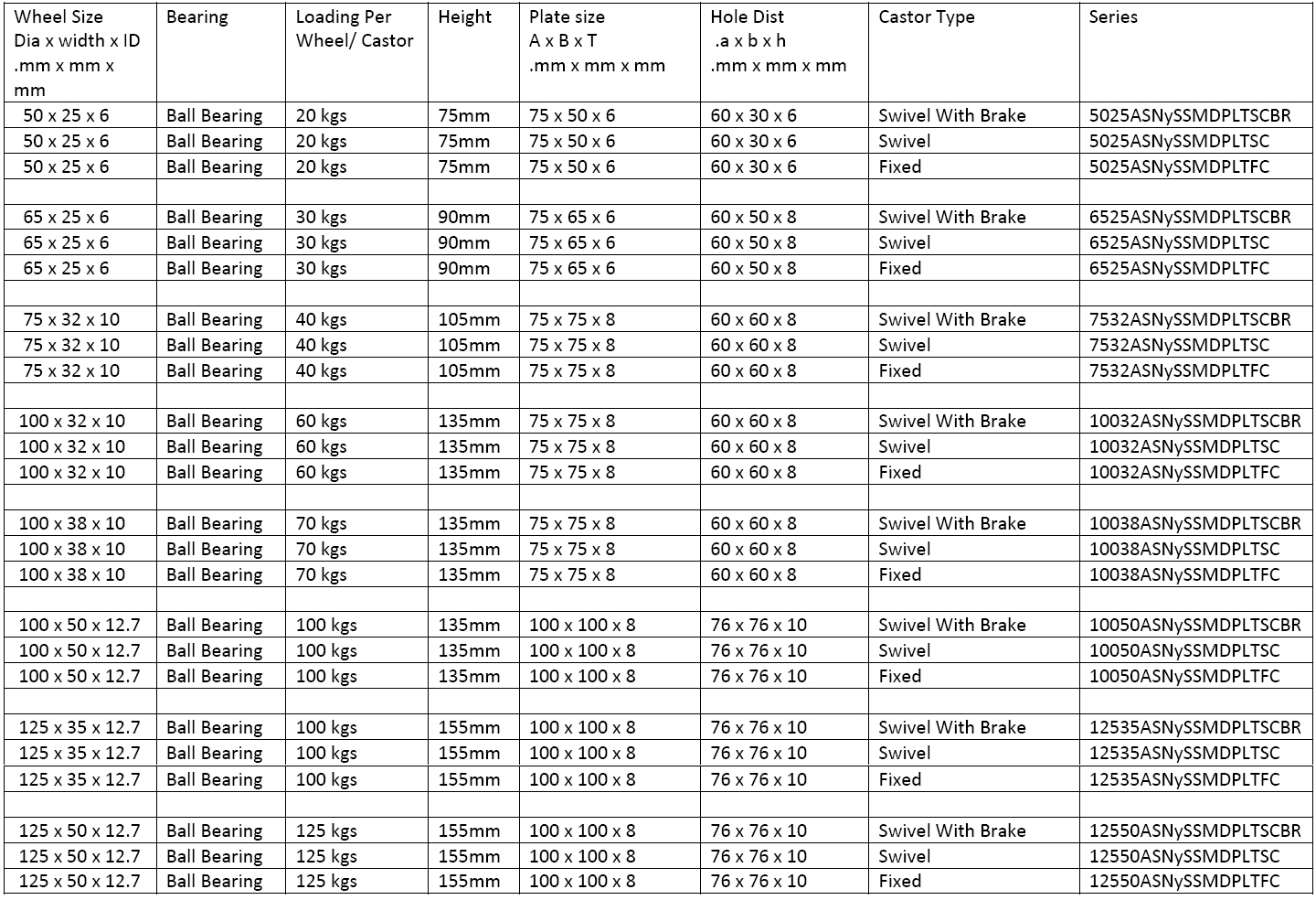 HEAVY Duty Single Wheel PLATE TYPE Castors (COLOUR OPTIONS: BLACK)