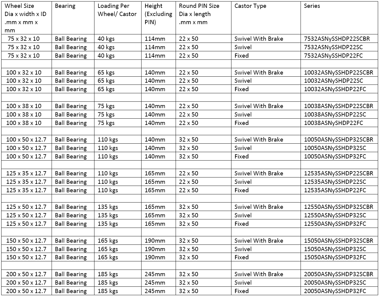 (Solid Round Pin Type Castors)