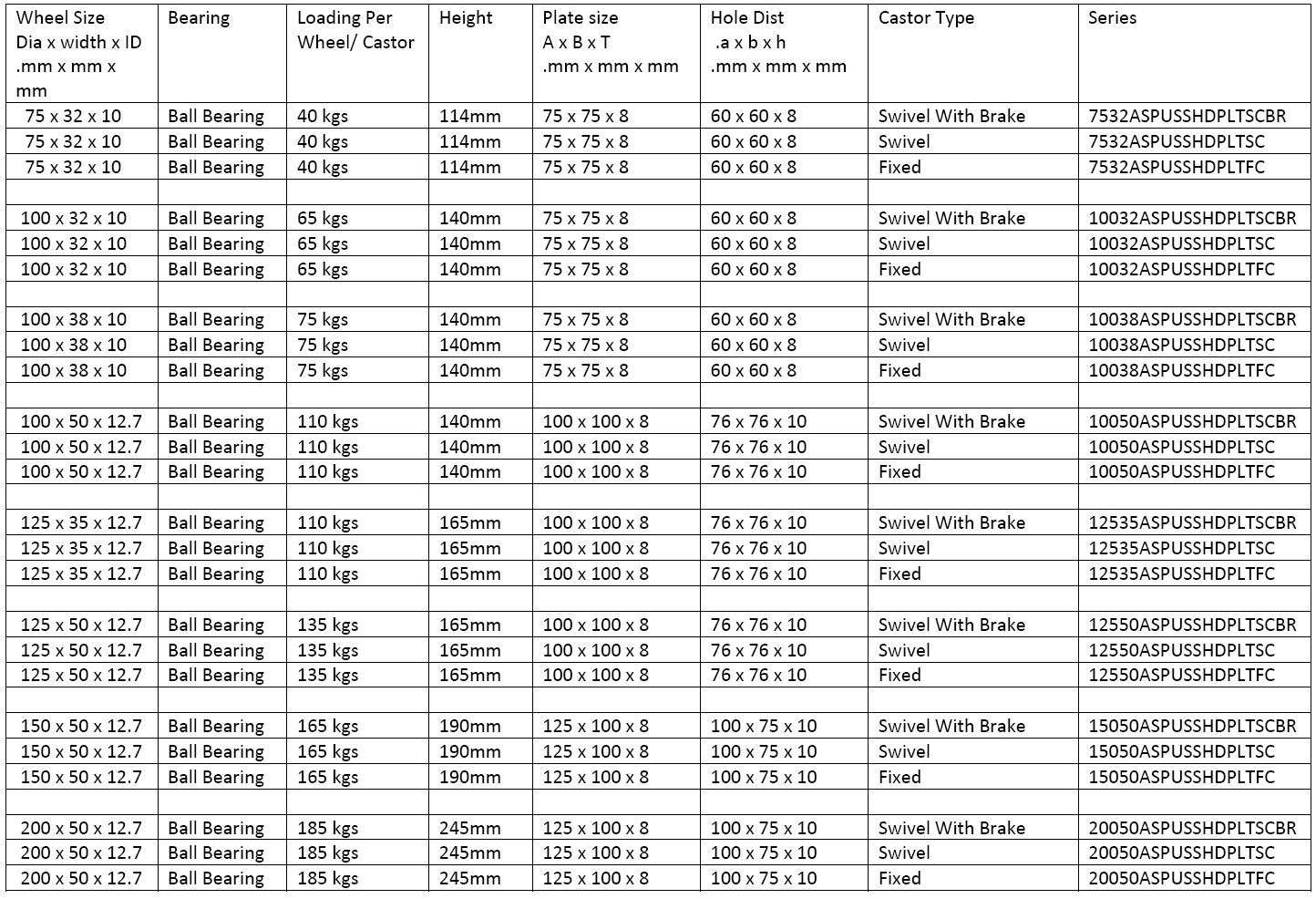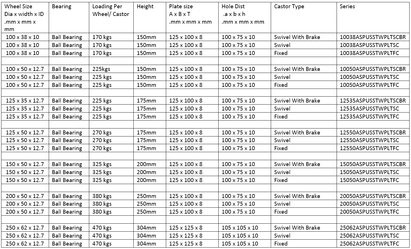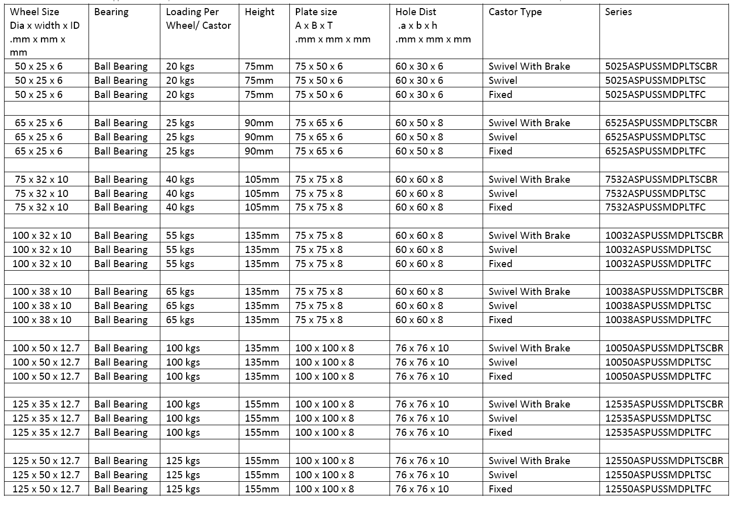 (Plate Type Castors)