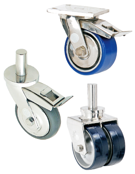 ANTI STATIC (STATIC DISSIPATIVE) POLYURETHANE WHEELS ON ALUMINUM INSERT FITTED TO STAINLESS STEEL CASTORS (Suited for ESD in Flameproof Areas)