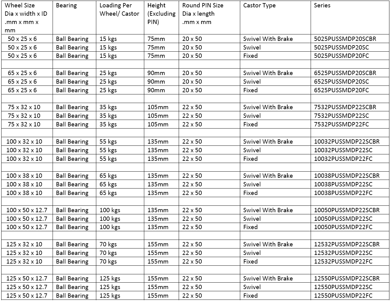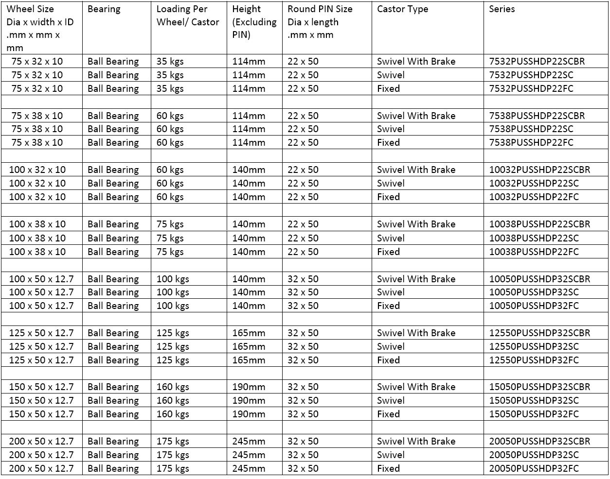 SOLID Round Pin type Castors (Brakes will be of Stainless Steel Shell with White NYLON Foot Pedal for Lock/ Unlock)