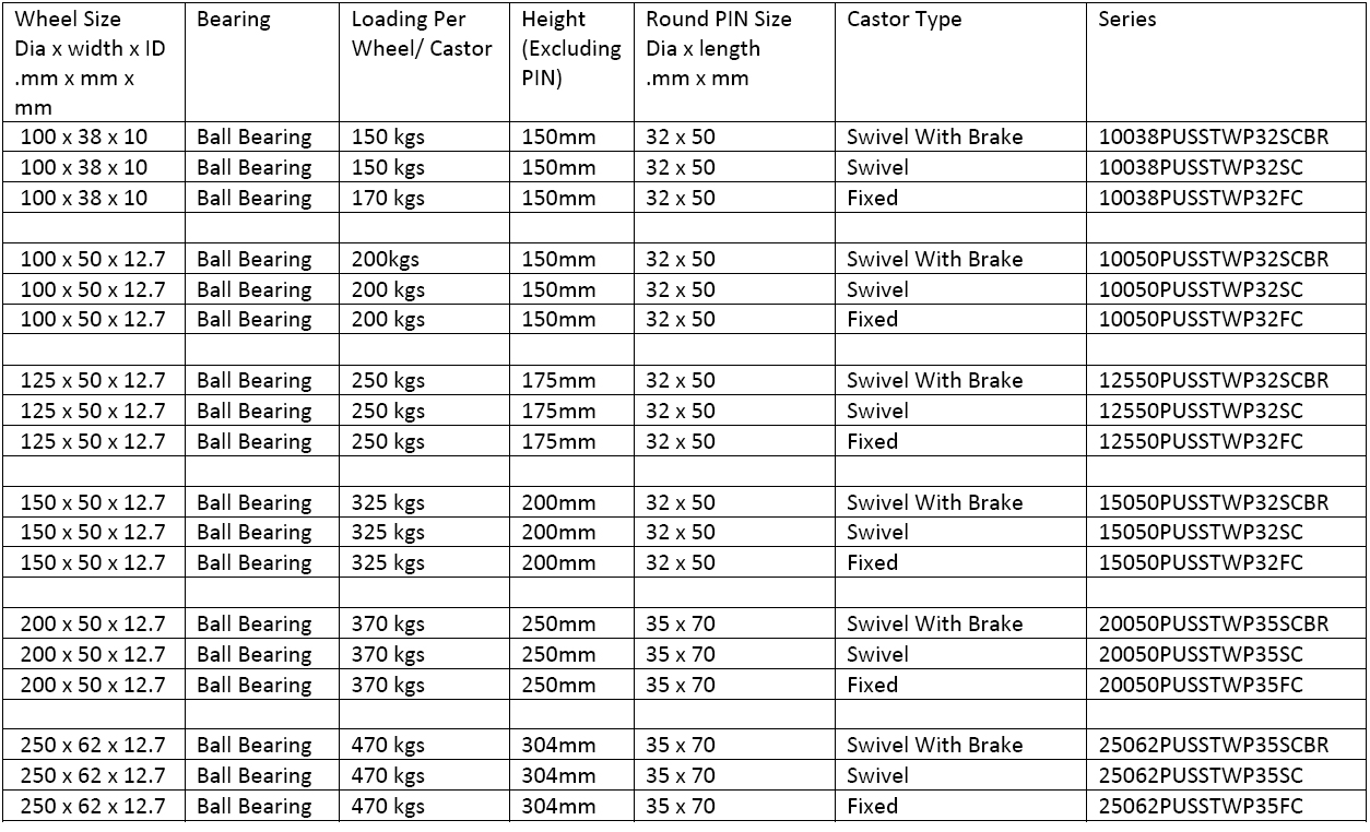SOLID Round Pin type Castors (Brakes will be of Stainless Steel Shell with SS PEDAL for Lock/ Unlock)