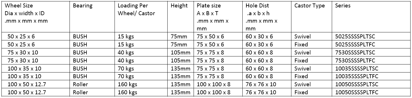 SOLID Stainless Steel wheel with Stainless Steel 304 quality Castors (PLATE TYPE CASTORS)