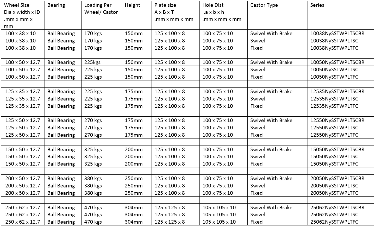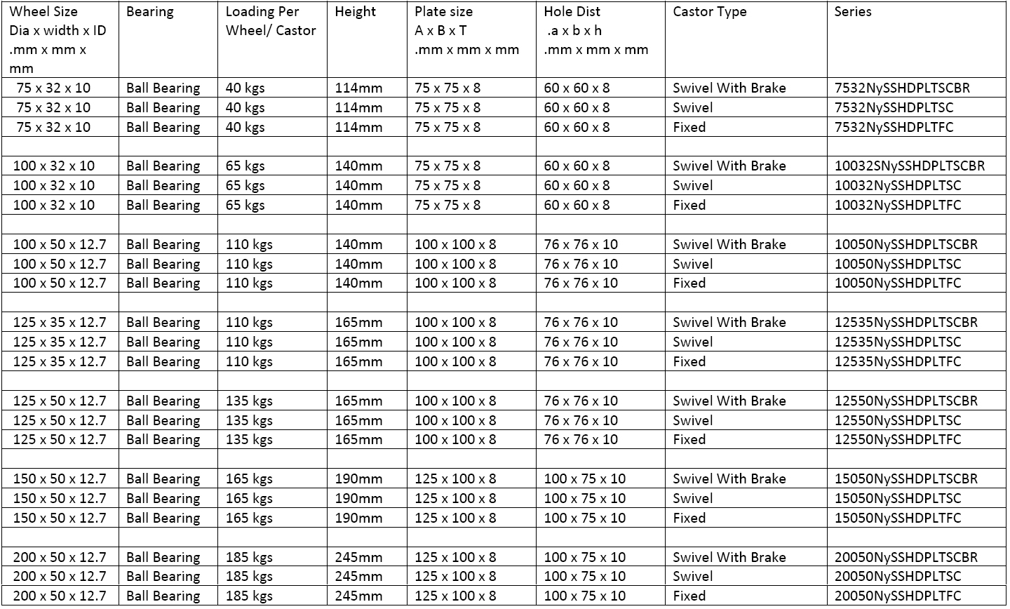 HEAVY Duty Single Wheel PLATE TYPE Castors (COLOUR OPTIONS: WHITE)