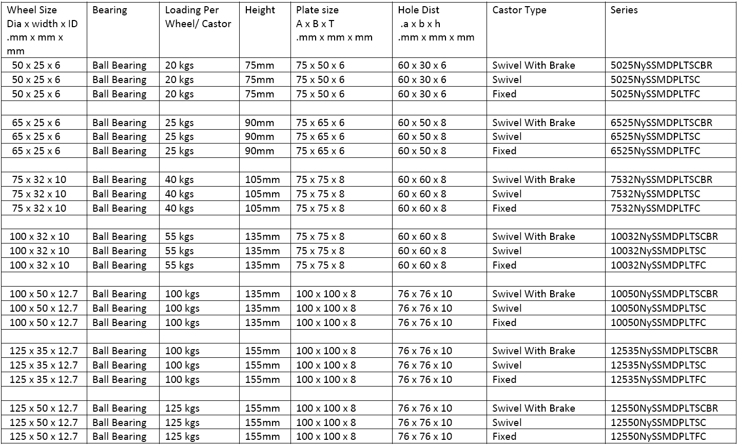 (Plate Type Castors)