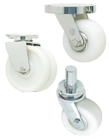 SOLID WHITE NYLON/ UHMW WHEELS FITTED TO STAINLESS STEEL CASTORS (Suited for KOTA/ TILED FLOORS)