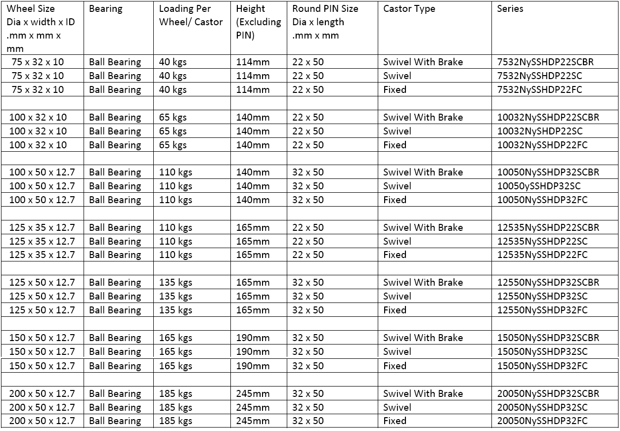 SOLID WHITE NYLON/ UHMW WHEELS FITTED TO STAINLESS STEEL CASTORS (Suited for KOTA/ TILED FLOORS)