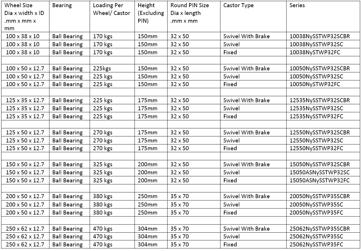 HEAVY Duty Single Wheel ROUND PIN type Castors (COLOUR OPTIONS: WHITE)