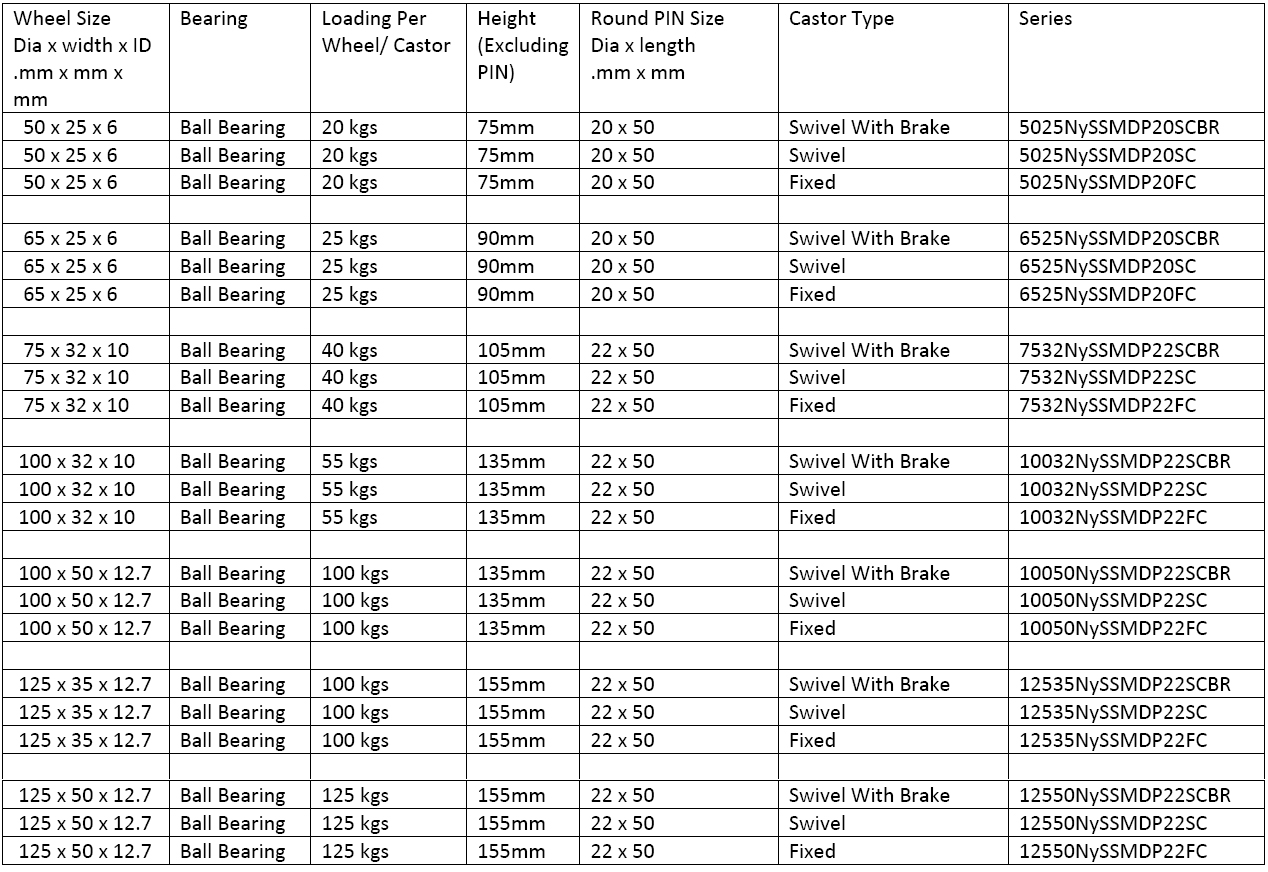 (Solid Round Pin Type Castors)